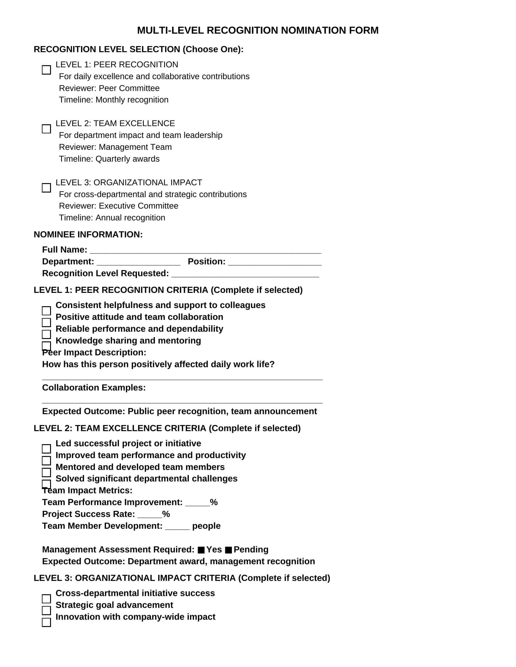Template 2: Impact-Based Employee Nomination Form